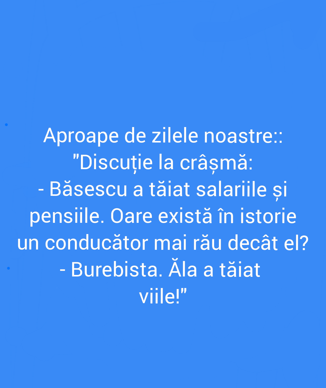 Acesta este un site cu conținut satiric căzut în patima ficțiunii. "Știrile" pe care le găsești aici nu sunt știri, nu sunt nici dezvăluiri și în niciun caz nu ar trebui să le găsești în afara site-ului, în realitate, decât dacă sunt de bine.