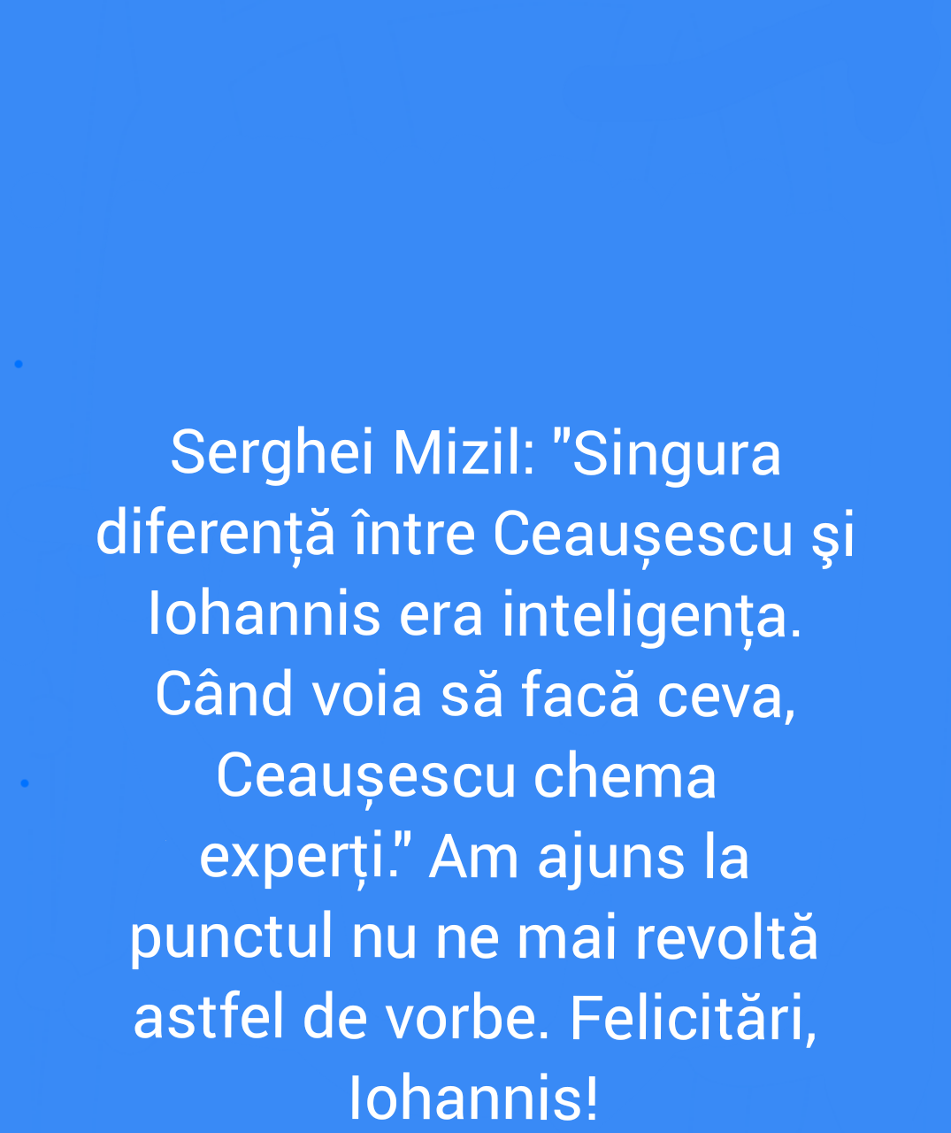 Acesta este un site cu conținut satiric căzut în patima ficțiunii. "Știrile" pe care le găsești aici nu sunt știri, nu sunt nici dezvăluiri și în niciun caz nu ar trebui să le găsești în afara site-ului, în realitate, decât dacă sunt de bine.