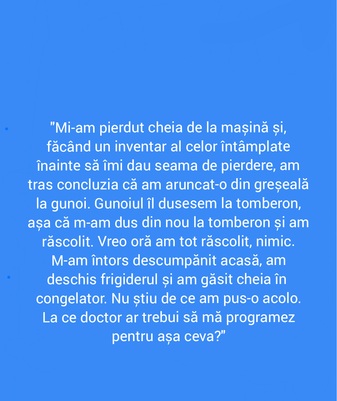 Acesta este un site cu conținut satiric căzut în patima ficțiunii. "Știrile" pe care le găsești aici nu sunt știri, nu sunt nici dezvăluiri și în niciun caz nu ar trebui să le găsești în afara site-ului, în realitate, decât dacă sunt de bine.