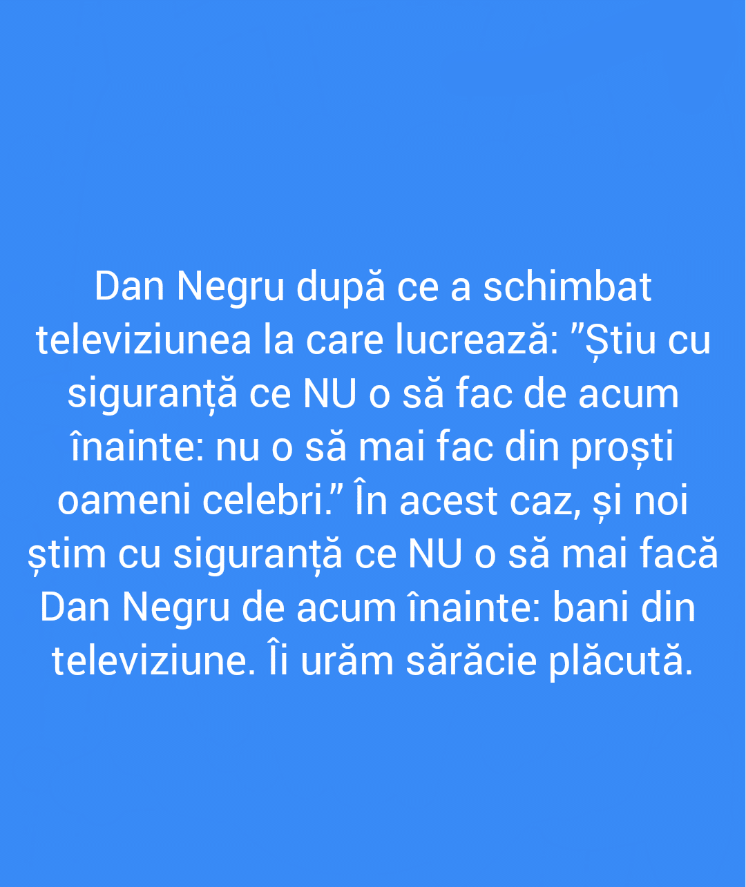 Acesta este un site cu conținut satiric căzut în patima ficțiunii. "Știrile" pe care le găsești aici nu sunt știri, nu sunt nici dezvăluiri și în niciun caz nu ar trebui să le găsești în afara site-ului, în realitate, decât dacă sunt de bine.