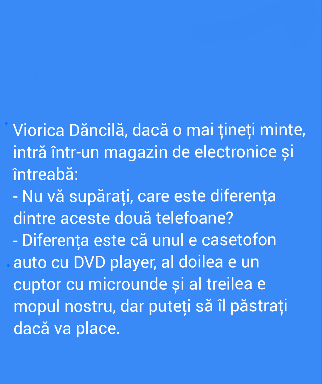 Acesta este un site cu conținut satiric căzut în patima ficțiunii. "Știrile" pe care le găsești aici nu sunt știri, nu sunt nici dezvăluiri și în niciun caz nu ar trebui să le găsești în afara site-ului, în realitate, decât dacă sunt de bine.