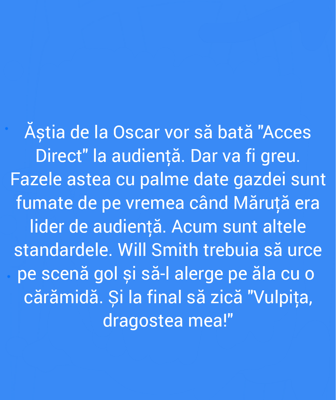 Ăștia de la Oscar vor să bată “Acces Direct” la audiențăby Comentacu28/03/2022no comment0SharesShare on FacebookShare on Twitter