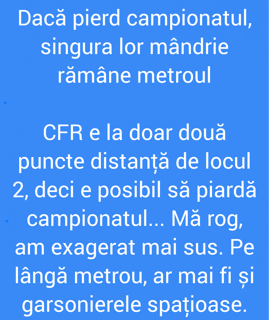 Dacă pierd campionatul, singura lor mândrie rămâne metroulby Comentacu17/04/2022no comment0SharesShare on FacebookShare on Twitter