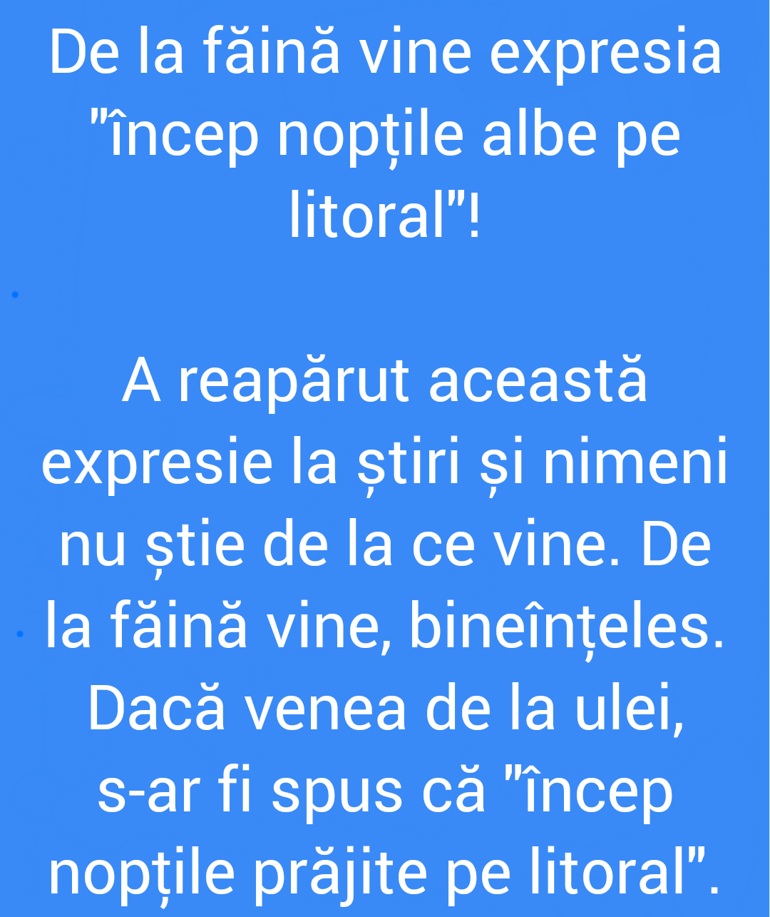 De la făină vine expresia “încep nopțile albe pe litoral”!