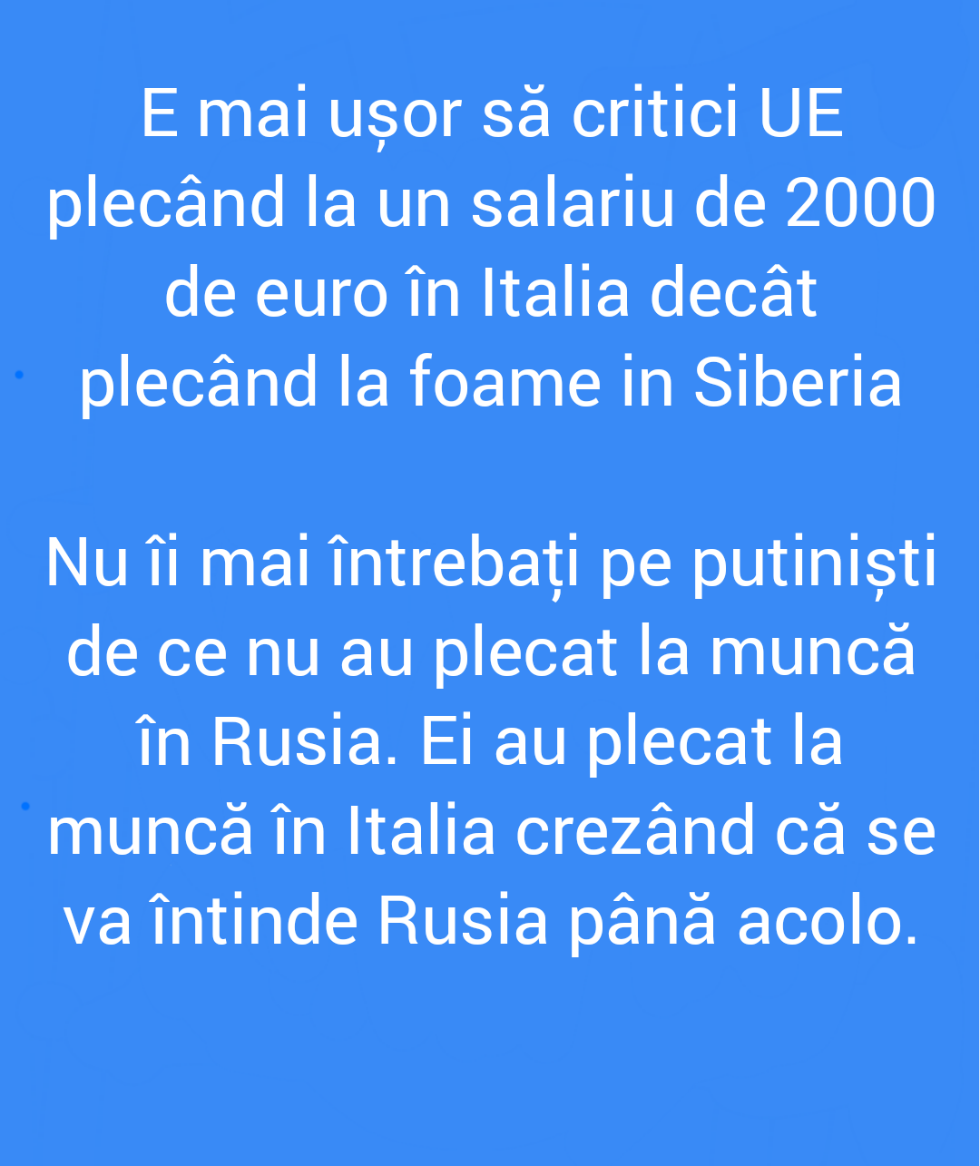 E mai ușor să critici UE plecând la un salariu de 2000 de euro în Italia decât plecând la foame în Siberiaby Comentacu17/04/2022no comment0SharesShare on FacebookShare on Twitter