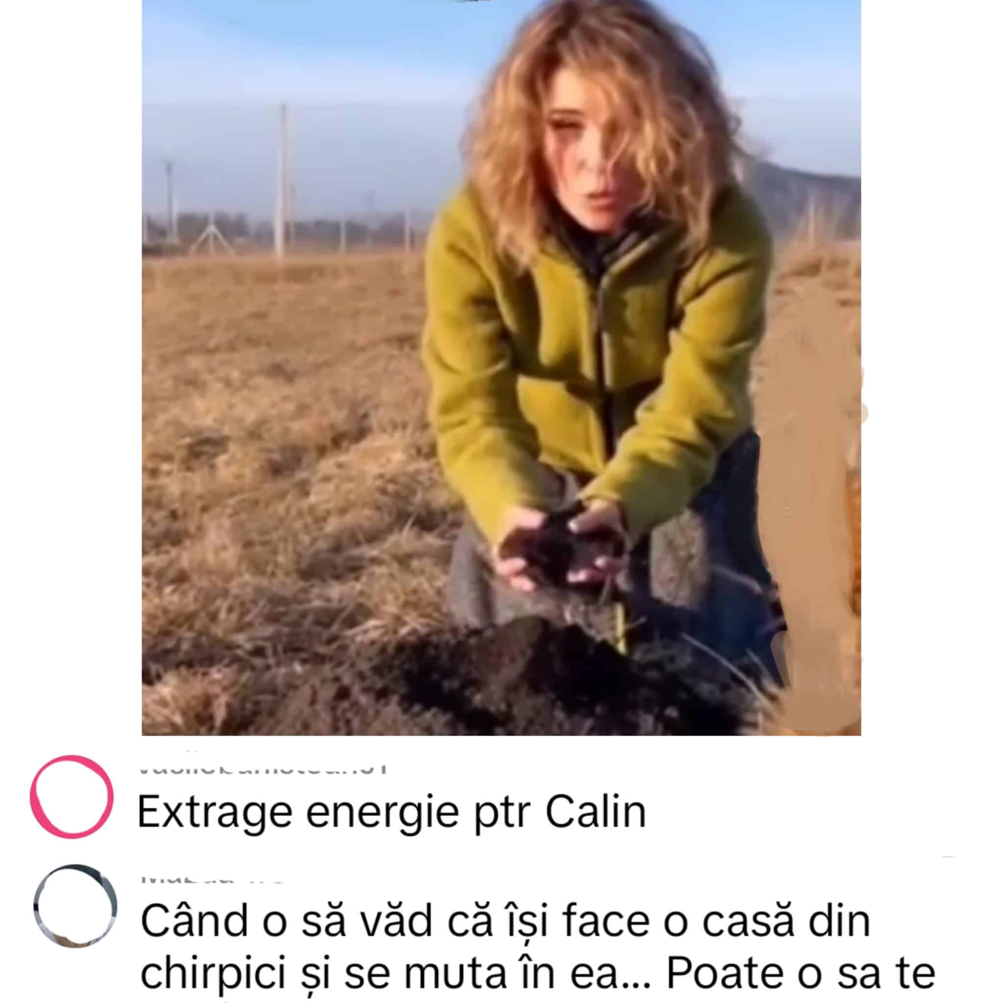 În această imagine, o vedem extrăgând energie pentru domnul Călin. Energia e formată din țărână îmbogățită cu resturi de la industria calului. Cu bălegar.