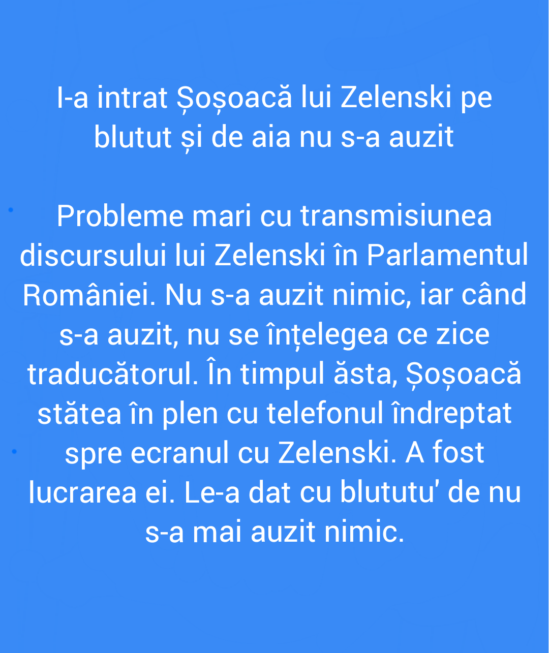 Șoșoacă a bruiat transmisiunea lui Zelenski cu blututu’