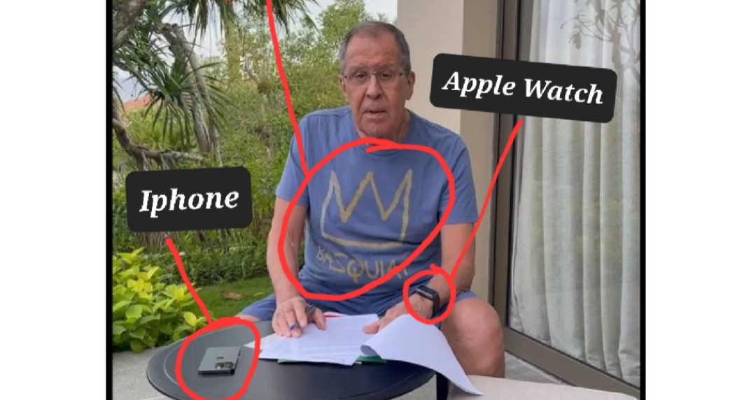 Lavrov s-a filmat azi cu tricou, ceas și telefon mobil din Statele Unite, Occident. Adică de la Satana din ogradă. Întrebarea e dacă respectivele obiecte au fost achiziționate sau dacă au fost “eliberate”, adică luate de forțele de eliberare de la cetățenii ucraineni. Dacă e varianta a doua, atunci atragem atenția că armata rusă eliberatoare are o nouă formă de salut: “Davai Apple Watch!”