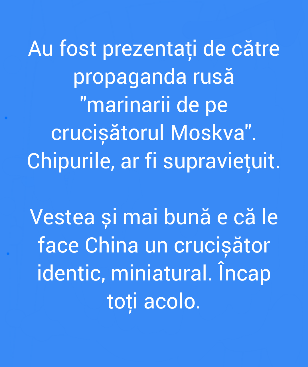 Crucișătorul Moskva s-a scufundat se supărare că era atâta apă în jurul lui și nicio mașină de spălat