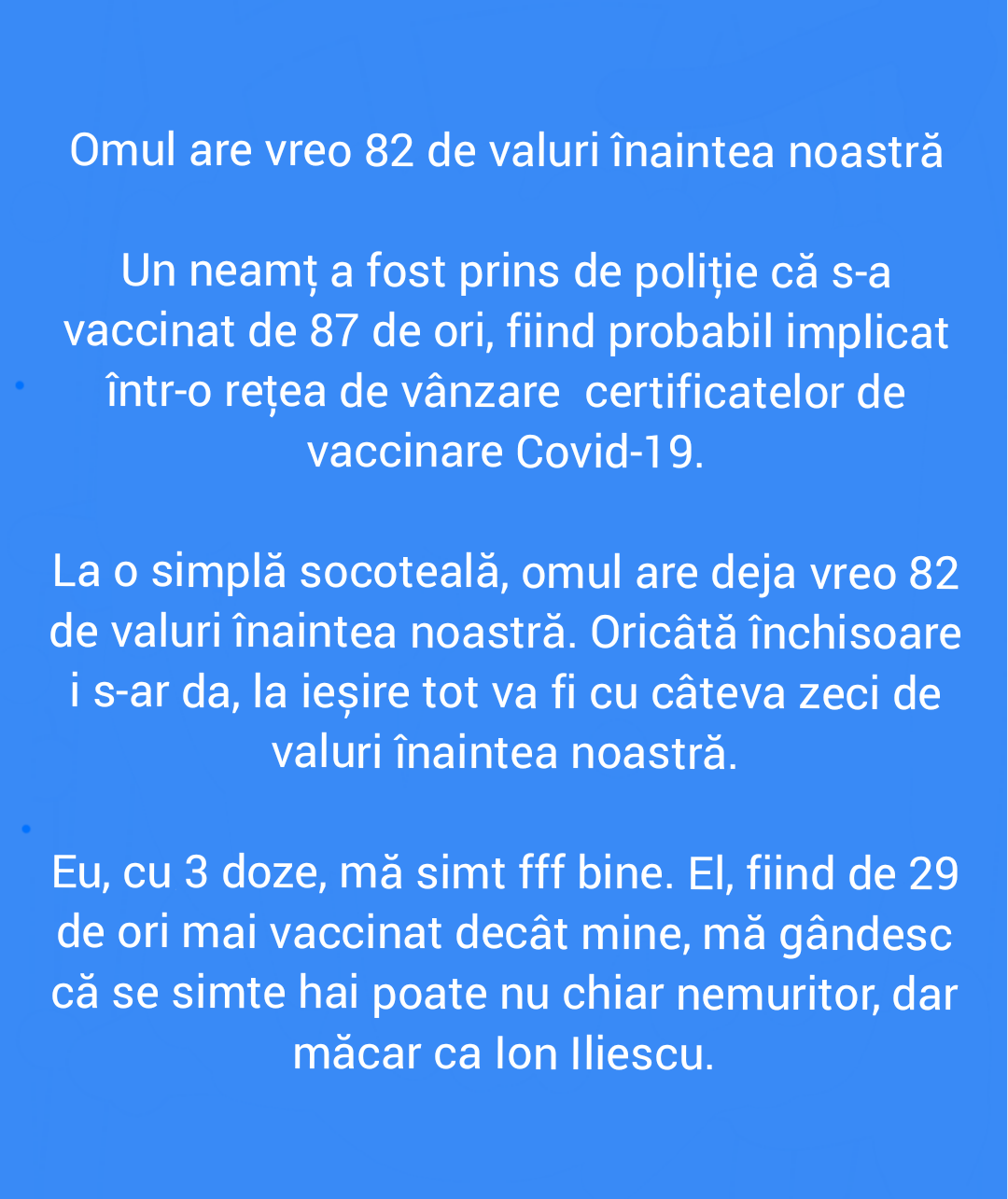 Acesta este un site cu conținut satiric căzut în patima ficțiunii. "Știrile" pe care le găsești aici nu sunt știri, nu sunt nici dezvăluiri și în niciun caz nu ar trebui să le găsești în afara site-ului, în realitate, decât dacă sunt de bine.