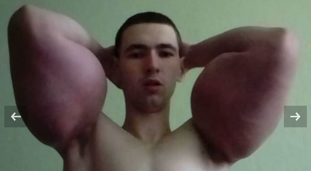 “Am început să merg la sală cu doi ani înainte să fiu chemat la serviciul militar. În armată, eram îngrijorat că voi avea greutăţi şi voi slăbi, aşa că am decis să încerc ulei sintetic. Când am terminat serviciul militar, am început să mă transform şi am făcut totul acasă. Mama mea era foarte îngrijorată de ceea ce făceam, dar acum suntem bine şi ştie că uleiul sintetic poate fi îndepărtat. La început am vrut să-l injectez în alte părţi ale corpului meu.”