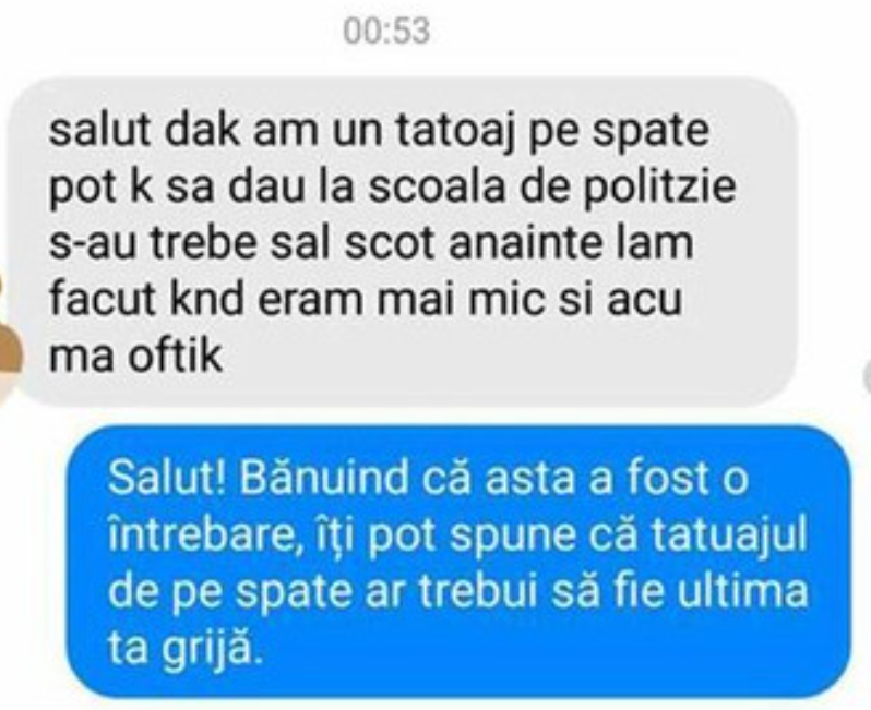 E și o veste bună: răspunsul aparține polițistului Marian Godină, ceea ce înseamnă că poliția are măcar prezent.