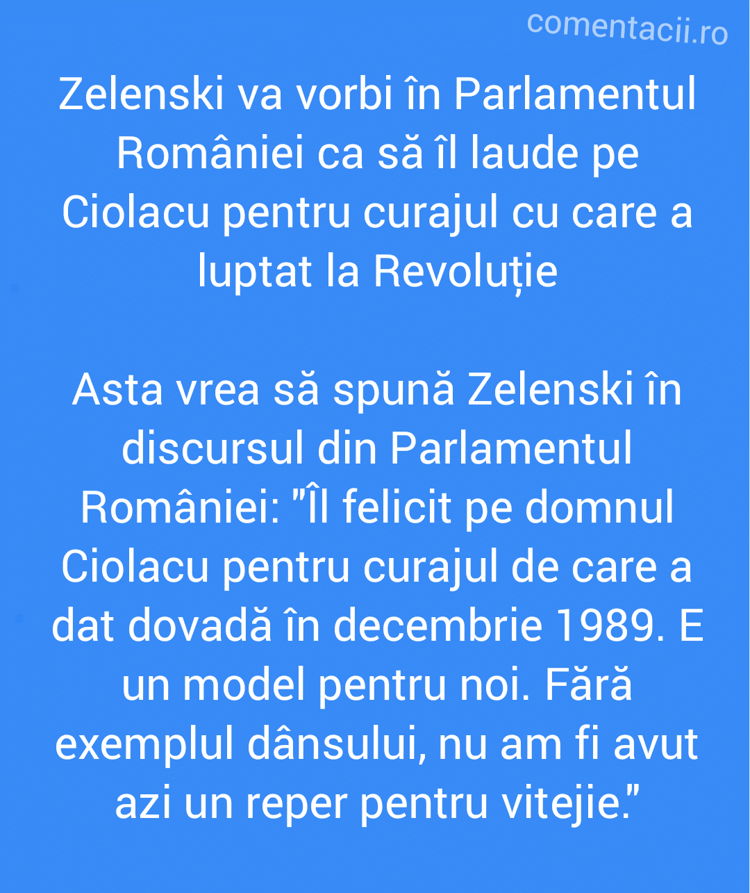 Zelenski va vorbi în Parlamentul României ca să îl laude pe Ciolacu pentru curajul cu care a luptat la Revoluțieby Comentacu04/04/2022no comment0SharesShare on FacebookShare on Twitter